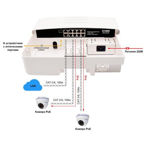 APN-SX10P – 11-портовый уличный L2 коммутатор HiPoE/PoE+ до 120Вт