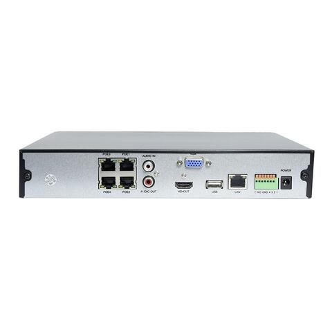 9 канальный H264/H264+/H265/H265+ Real Time NVR, ONVIF 2.4, «облачный» сервис. Встроенный коммутатор на 4 порта с PoE. Процессор SSR621Q, операционная система Linux, входящий поток до 80Mbps. Режимы записи в реальном времени (25fps): 8 каналов 4K, 9 каналов с разрешением 5/4/3/2/1,3/1 Мп. ONVIF 2.8. Воспроизведение: 1 канал 5-4Мп / 2 канала 3Мп / 4 канала 2/1,3/1 Mп. 2 видеовыхода: 1хHDMI 4К (3840×2160/30Гц), 1xVGA (1920×1080/60Гц). Жесткий диск: 1 x SATA HDD до 8TB. Аудио: 1 выход (RCA), G711u, G711a, ADPCM_DVI4. Тревога: 4 входа / 1 выход. 5 портов LAN/WAN Ethernet RJ45 10M/100Mbps: 4 порта LAN с PoE 15/30 Вт (IEEE 802.3af/at), бюджет более 50Вт / 1 WAN Ethernet. 2шт. USB2.0. Питание DC52В/1,25A. Размеры 260x215x43мм. Вес 2,0кг. Приложение BitVision.