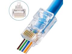 Разъемы RJ-45 универсальные - контакты разъемов имеют три ножа, что позволяет их использовать, как для одножильного, так и многожильного кабеля.