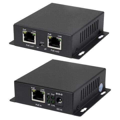 Порты:1 вх.- FE (10/100 Base-T), 2 выхода.- FE (10/100 Base-T) с выдачей PoE IEEE 802.3 af/at) до 30Вт. Размеры: 210x48x38 мм. Потребляемая мощность 2Вт. 3 вида питания: по HiPoE (IEEE 802.3 af/at/bt) или DC 12В или 48-52В. Металлический корпус размером: 88x84x25 мм. Рабочая температура: -10...+55 °С.