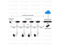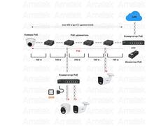 PoE удлинитель-инжектор 10/100Мбит/с до 150/100м (до 500 м при каскадном подключении) на 2 порта 100 Мбит/с или расстояние до 700м для устройств 10 Мбит/с.