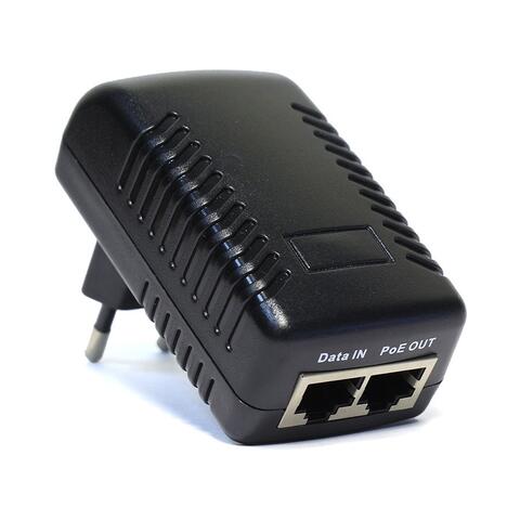 Пассивный PoE-инжектор в виде адаптера в розетку. Мощность PoE до 15,4Вт. Поддержка Passive PoE – 48В / 0.32A. Совместим с оборудованием PoE IEEE 802.3af. Порты: вход - RJ45( 10/100 Base-T), выход - RJ45(PoE). Защита от короткого замыкания и перегрузки по току с автоматическим восстановлением. Защита от скачков напряжения по выходу. Распределение контактов PoE: V+ (pin4/5), V-(pin7/8). Размеры 83x55x47 мм, Питание: AC100-240V. Рабочая температура -20...+45°C. Вес 170гр.