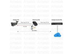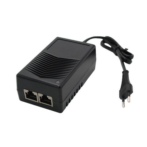 Пассивный PoE-инжектор. Мощность PoE до 30Вт. Поддержка Passive PoE – 48В 3%. Совместим с оборудованием PoE IEEE 802.3af/at. Порты: вход - RJ45( 10/100 Base-T), выход - RJ45(PoE). Защита от короткого замыкания и перегрузки по току с автоматическим восстановлением. Распределение контактов PoE: V+ (pin4/5), V-(pin7/8). Размеры 90x52x35 мм, Питание: AC100-240V. Рабочая температура -20...+45°C.
