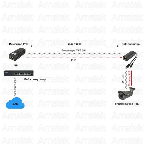 PoE-сплиттер стандарта IEEE 802.3af предназначен для питания оконечных сетевых устройств, не поддерживающих PoE. Выходной сигнал 12В/1А. Поддержка Fast Ethernet. Соответствует стандарту PoE IEEE 802.3af. Порты: вход-RJ45(PoE, IEEE 802.3af), выходы - RJ45(FE, 10/100 Base-T) + питание =12В/1А (разъем питания 2.1х5.5мм). Автоматически определяет наличие сигнала PoE в Ethernet кабеле. Рабочая температура 0 ... +40°C