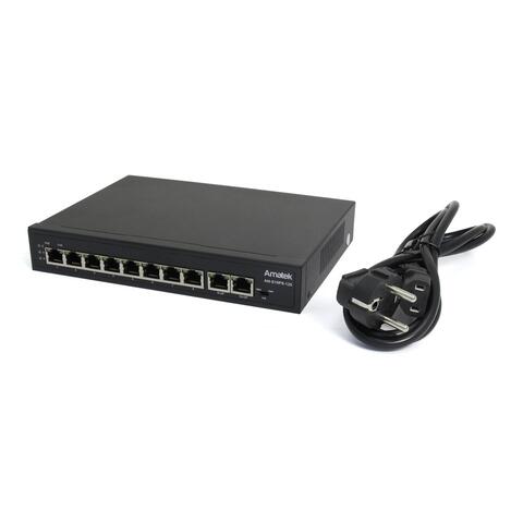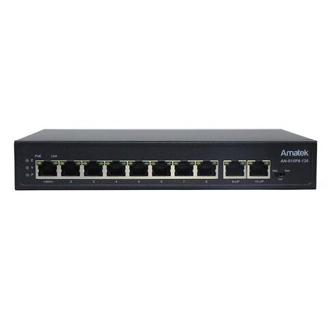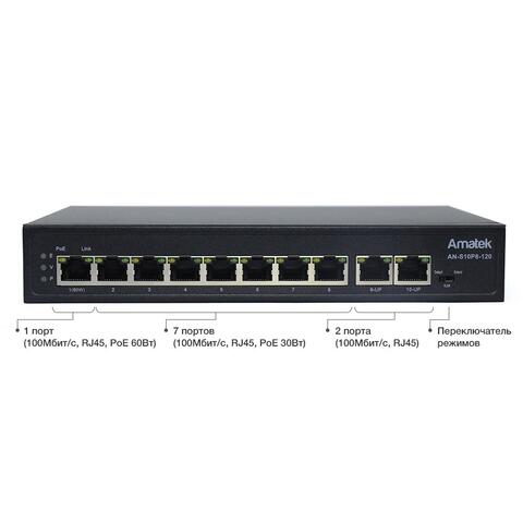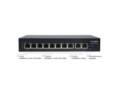 Коммутатор на 10 портов (1 HiPoE + 7 PoE+ портов + 2 порта Uplink 100Mбит/с):