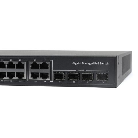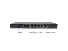 Управляемый L2+ коммутатор на 28 портов (24 PoE/PoE+ портов + 4 комбо порта Uplink):