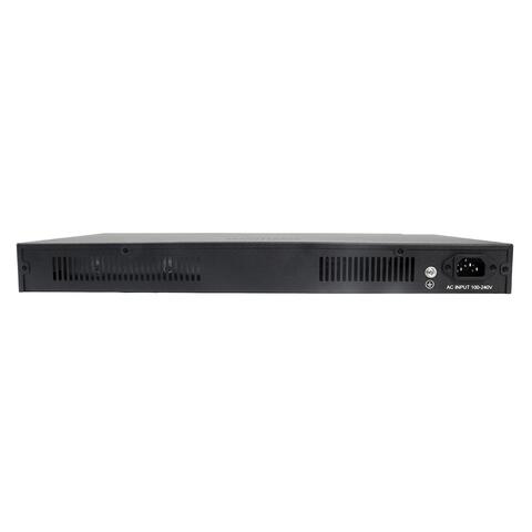 Управление: VLAN (Port Base), поддержка Spanning Tree (STP/RSTP/MSTP), QoS, SNMP, зеркалирование портов, управление PoE. AutoCheck (watchdog). Безопасность: MAC Address Binding, ACL, фильтр TCP/UDP, IGMP, MLD, защита от широковещательных штормов, агрегация портов.  Индикация: Link/Activity, Скорость, 220В. Таблица MAC адресов 8К, матрица 64 Гбит/с. Защита портов от импульсного перенапряжения. Температура -20…+50°С. Питание AC 110-240В. Размеры 440x290x45 мм. Высота 1U. Кронштейн для монтажа в 19-дюймовую стойку и консольный кабель в комплекте.