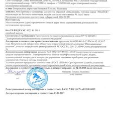 Видеокамеры Amatek (№1). Декларация соответствия Таможенного союза (EAC) (2018)